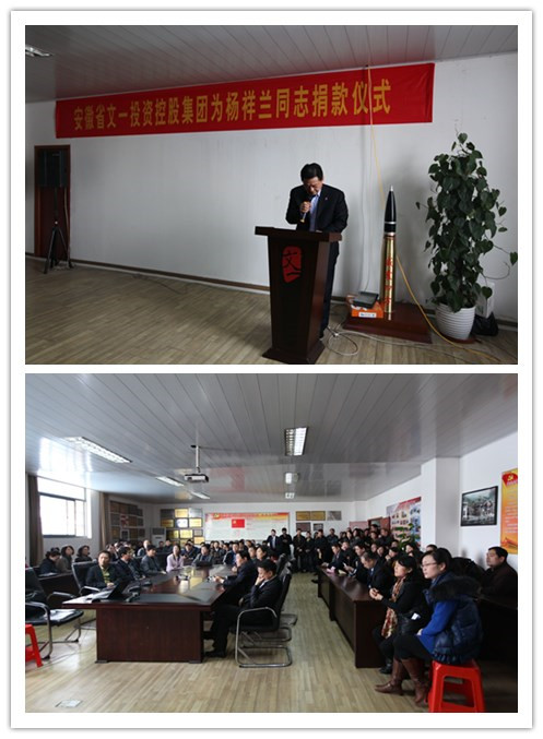 2014年3月11日,文一集团三楼会议室里人流涌动,《爱的奉献》的歌曲在会议室里回荡,为物业公司杨祥兰同志的捐款仪式正在举行。来自集团各单位、部门的爱心人士从四面八方赶来,怀揣一颗颗滚烫的爱心,为这位遭受厄运的文一家人,做出力所能及的奉献。