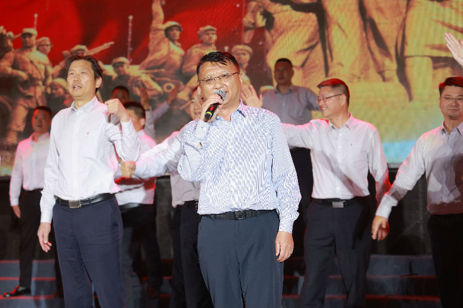 (周文育董事长领唱《长征组歌》)