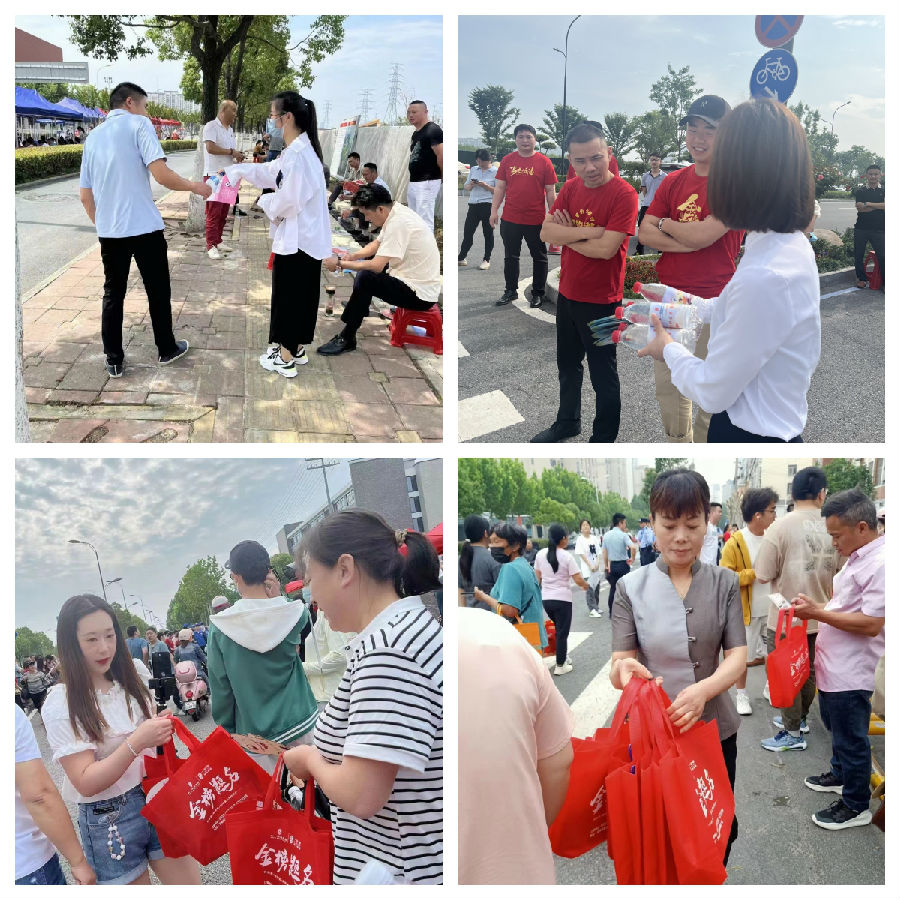 6月7日一早,文一酒店集团“爱心助考小分队”便早早出发,分别在合肥市三十八中、五中、五十五中,肥东县一中、六中、圣泉、凯悦,长丰县城关中学、长丰一中、实验中学等学校助考点,为考生和考生家长免费分发助考物品,满载着祝福与爱心的矿泉水和扇子送到考生家长手里时,不仅送去了清凉,也缓解了考生家长们焦灼忐忑的心理压力。