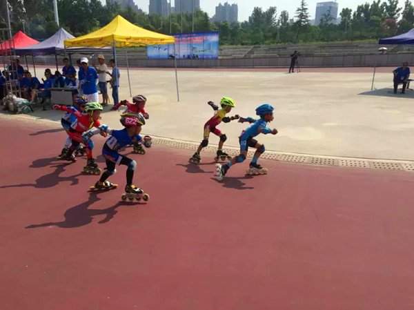 ??7月28、29日,一年中最热的“中伏”天,气温预报39摄氏度。早上才六点多钟,太阳就火辣辣的照得人浑身冒汗。就是在这样的一个日子里,众队员不畏暑热,合肥市第十一届全民运动会轮滑比赛在滨湖轮滑场如期进行。??